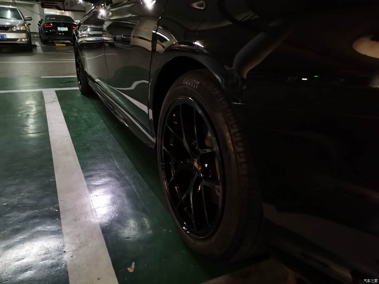 轮毂不得不说一下,原厂的风火轮真的是丑到爆炸,设计师什么审美啊,满大街随便抓一台车我都感觉比我的风火轮好看。所以最后选择换了套定制的国产锻造BBS亮黑轮毂,但是因为深圳抓改装抓太严了,所以还是选择了和原厂一样大的18寸。换完轮毂以后胎噪有稍微改善一点点,还有前轮过减速带的时候也紧凑了一点,不仔细感受就发现不了。