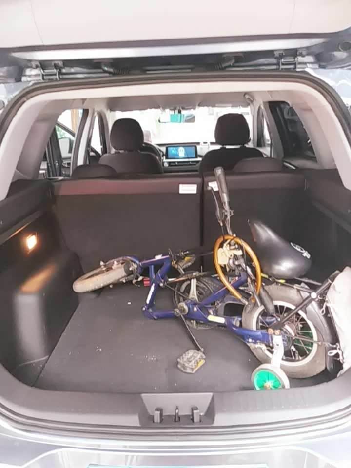车上有些凌乱,放孩子的玩具,自行车啥的绰绰有余。遗憾的是后排放倒不是存平的,有些遗憾。