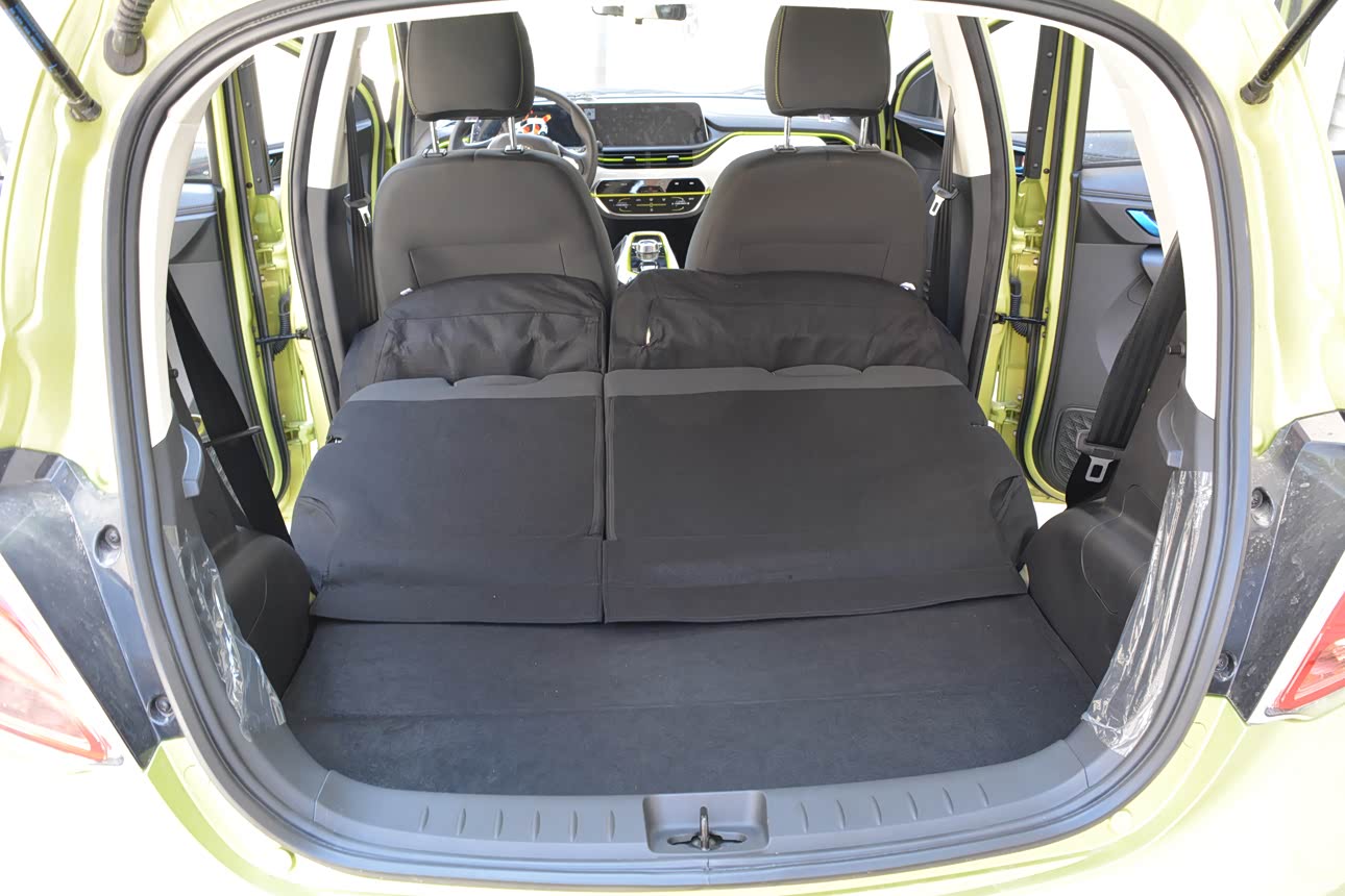 这个是它后备箱空间,后排座椅放倒后是很宽敞的,偶尔拉点大物件也能应对!不过建议若是想要用这车拉重物,建议买个厚实点的垫子铺上,因为这款小车的靠背后面是没有钢板支撑的!