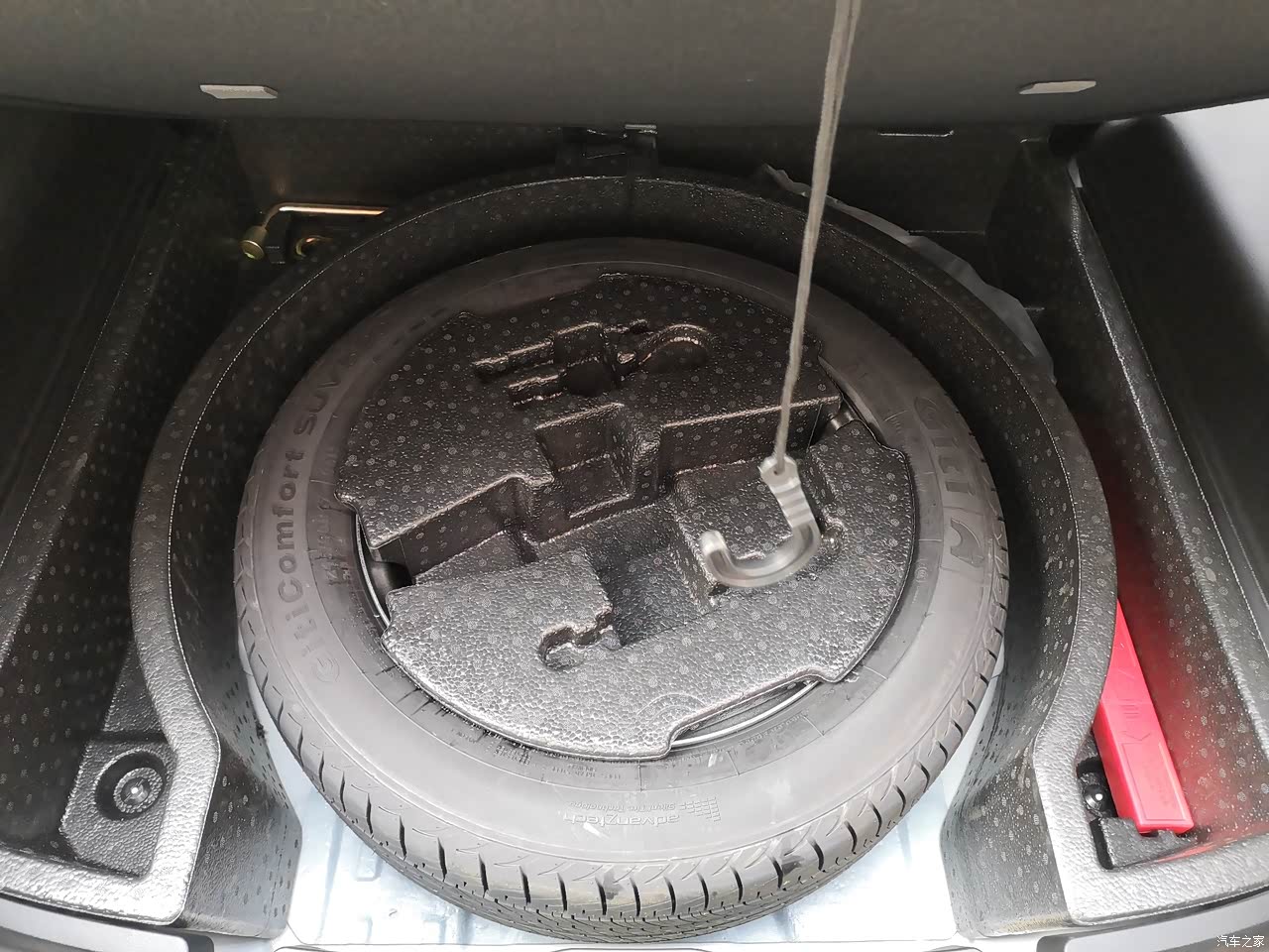 后备箱配备了全尺寸的备胎,千斤顶三脚架和随车工具,一应俱全