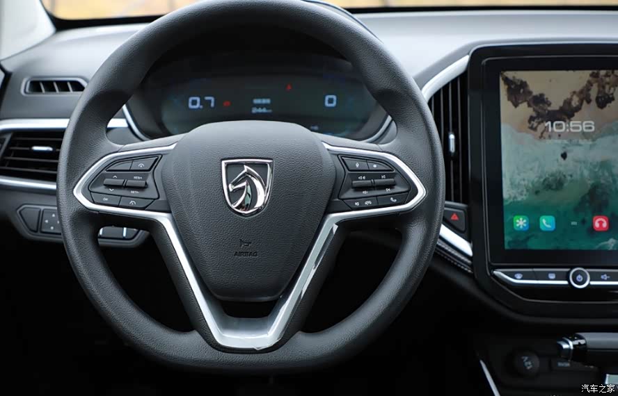 内饰比较简单,没有太多装饰,有的时候过个沟坎,车身会比较晃,中控台比较简单,啥也没有,塑料质感不太好,有点低端,但是新车没什么味道,中规中矩还算可以吧,健康安全第一位。