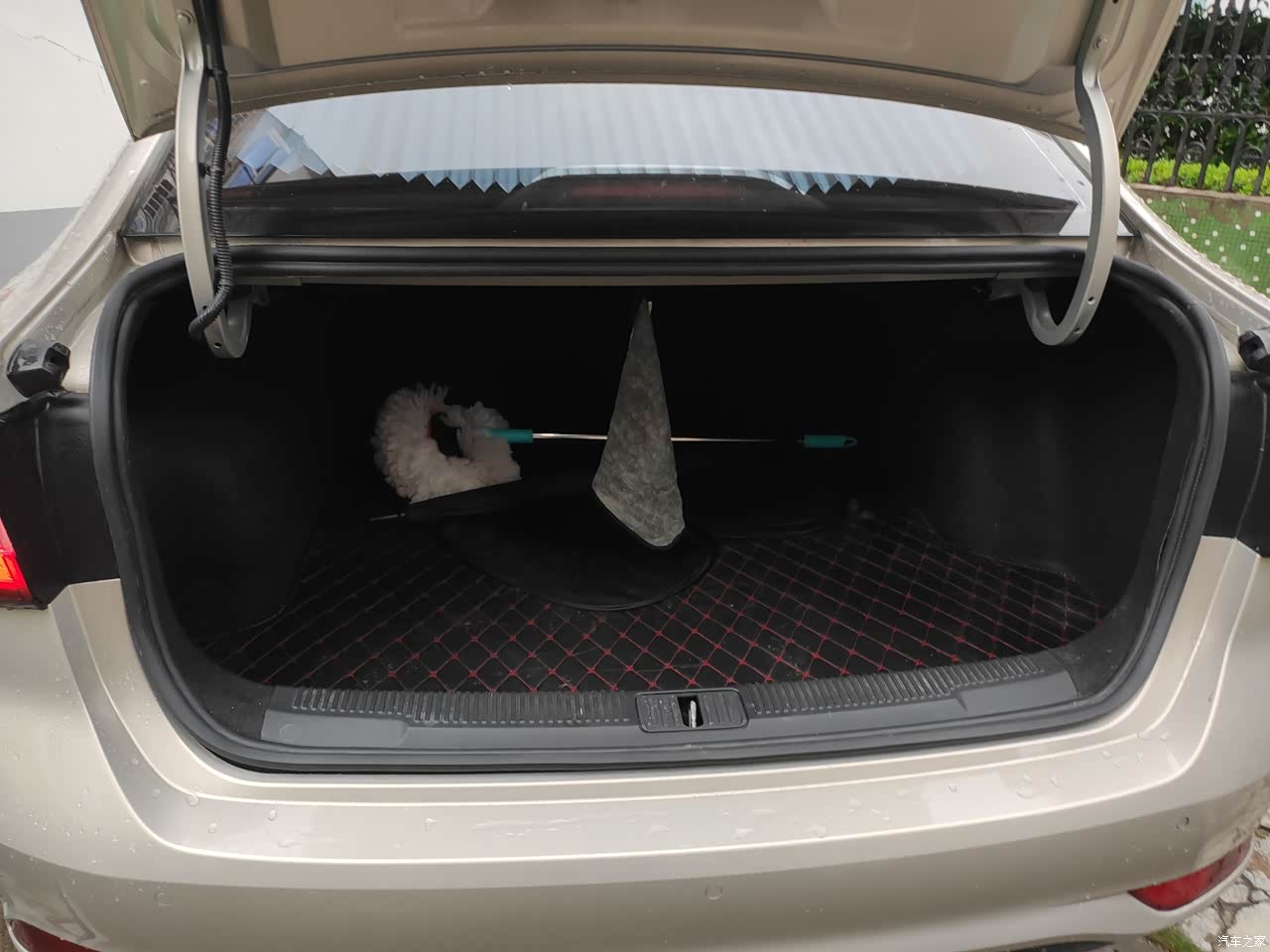 车子的后备箱平整,而且比较深,后备箱比我姐的吉普自由侠还能装,绝对是够用了。如果把后座放倒的话,还能再多装些。