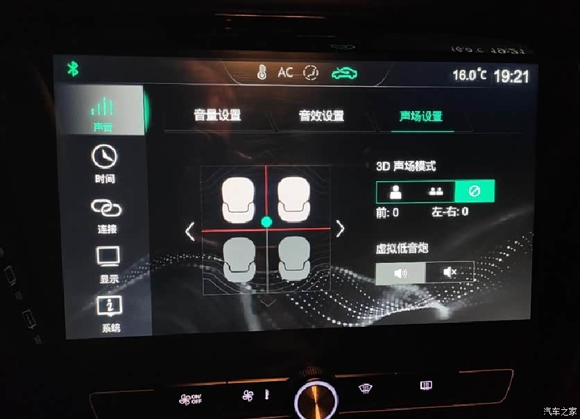 多媒体不但可以调节不同频率声音的比重,还能调节车内的声场分布,这个真的挺好玩的。