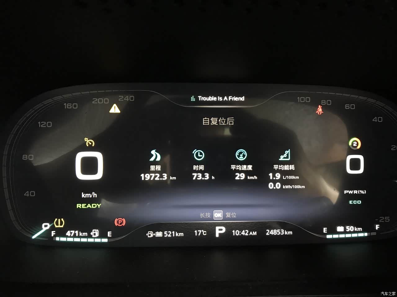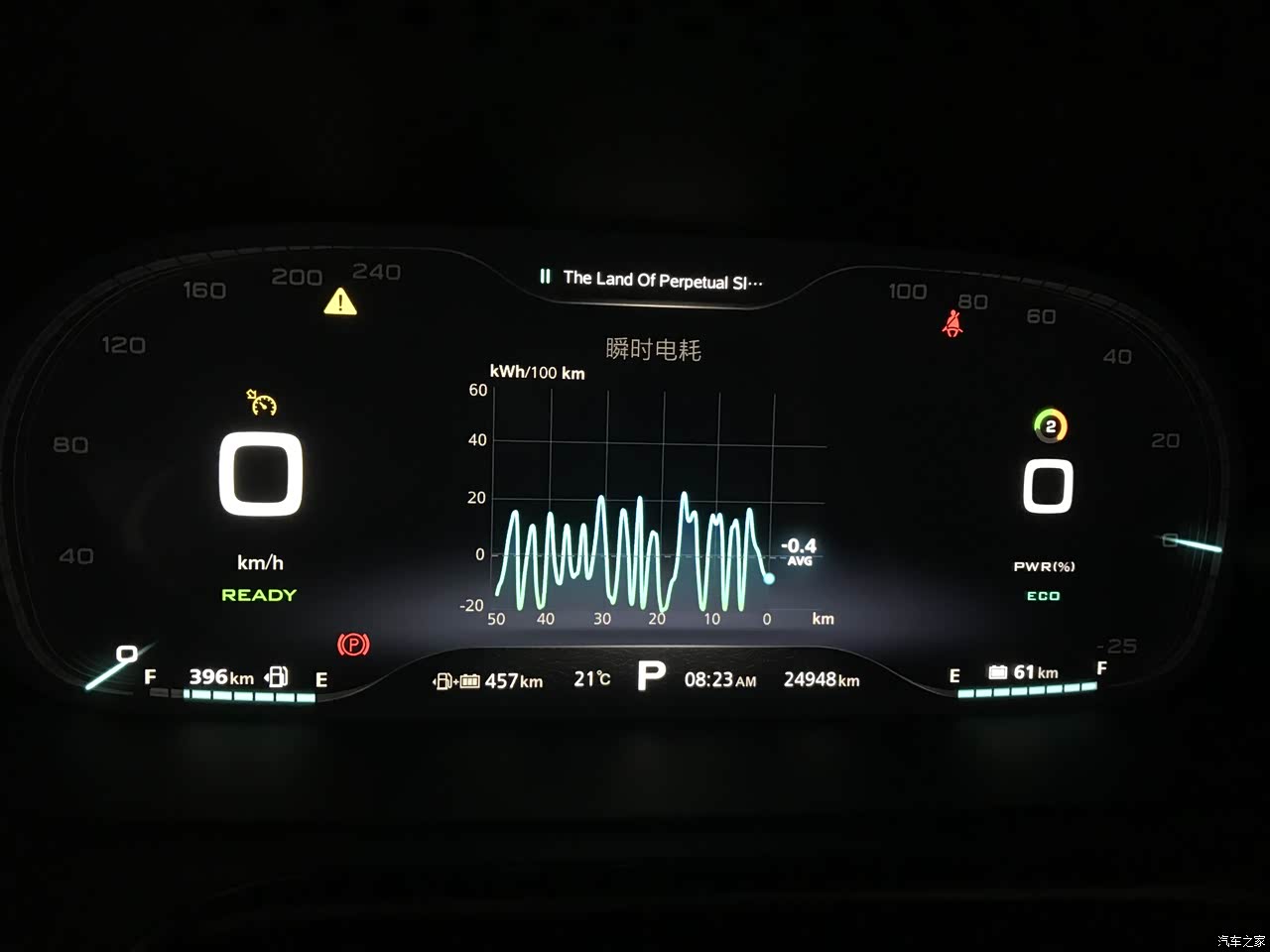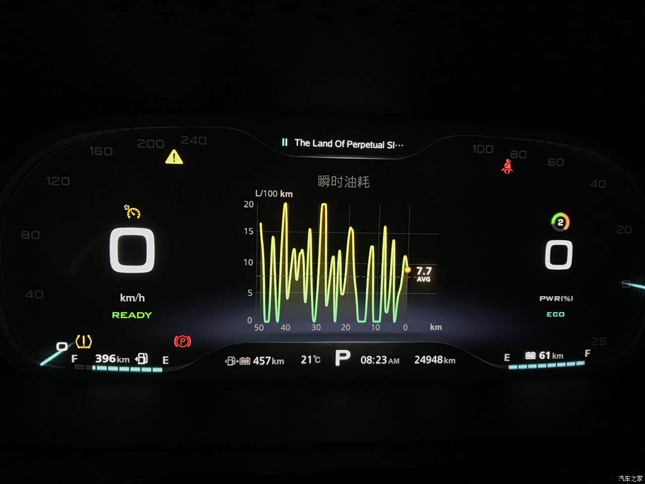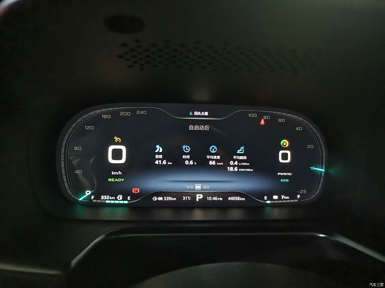 本人平时驾驶风格非激烈驾驶,单看仪表提示的瞬时电耗平均水平约为15kwh/100km,官网参数里边是12kwh的电池续驶里程60km(实际电显示61km),这样算下来实际电量消耗水平还是略优。实际油耗也有关注,大家买个新能源车油耗也自然是关注的点之一,电量消耗到启发动时候整车跑下来油耗大概7.5L左右的水平(30公里的路程其中一半高架畅通路段80的限速,一半市区拥堵路段)。平时逛论坛看评论也有专业人士建议高速工况切充电模式,便于在拥堵低速城市道路消耗电力,降低油耗。实际也试过,驾驶员不是很好控制一方面是这个电量管理的模式在中控屏三级菜单下,高速路需低头按键操作不安全。另一方面有时前方高速路段交通也不稳定,也会出现堵车,所以功能的切入切出频繁操作不是很方便,希望厂家后期能够做成较为便利的操作模式。