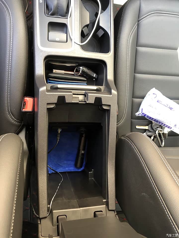 我很喜欢扶手箱前面的这个小储物盒,可以用来放一些证件之类的东西,它还有一个可伸缩的小门,可以增加隐私
