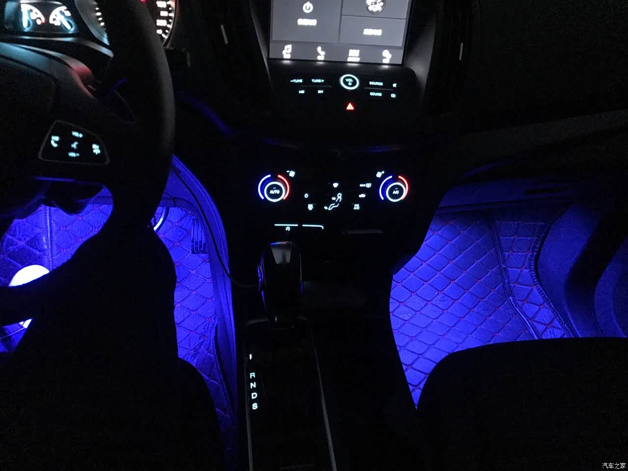 前后排空间属于这级别该有的,不显拥挤,晚上拍摄的,加装氛围灯