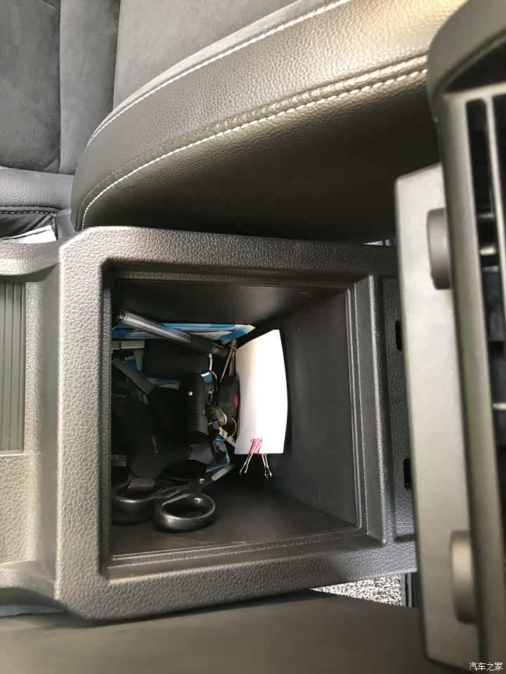 储物空间总体来说中规中矩,每个门板储物格都够放一两瓶水,中扶手箱口径不大,但是比较深,能放的东西还是不少的。