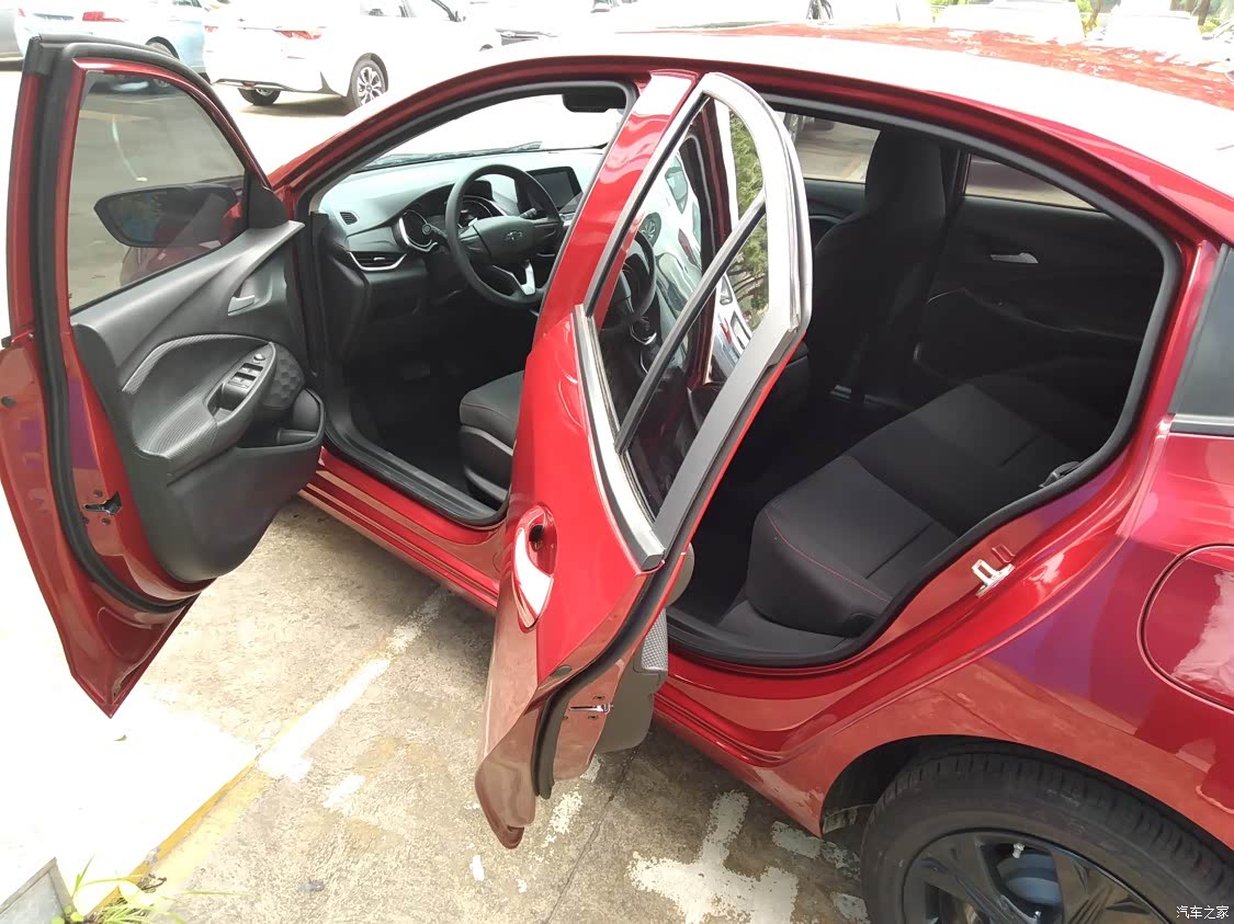 外观总体感觉四平八稳,简简单单没有太多修饰,虽然有点平庸,但是还是有挺多亮点的。首先说说前脸吧,很大的进气隔栅,采用新款的雪佛兰标志,黑色搭配银色边框,比以前好看很多。标志左右边采用redline设计,由一条红色装饰线贯穿两边,一直延伸到两边的大灯。轮毂采用黑色的边框,搭配红色喷漆,虽然只是装饰性效果,不过有比没有好吧,看上去挺运动的。后视镜挺帅的,全黑设计还带一道红色装饰线,很有运动感。科沃兹设计大体上比较简约,比较适合其家用型定位吧。