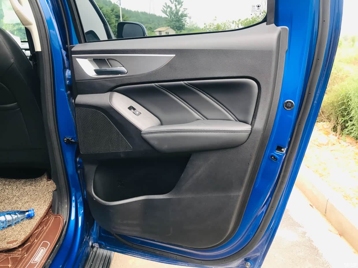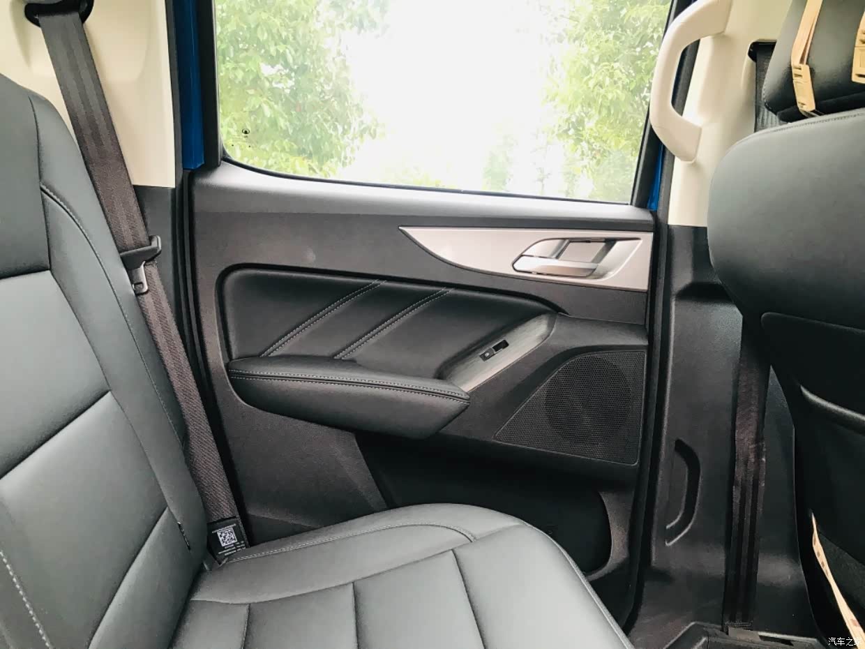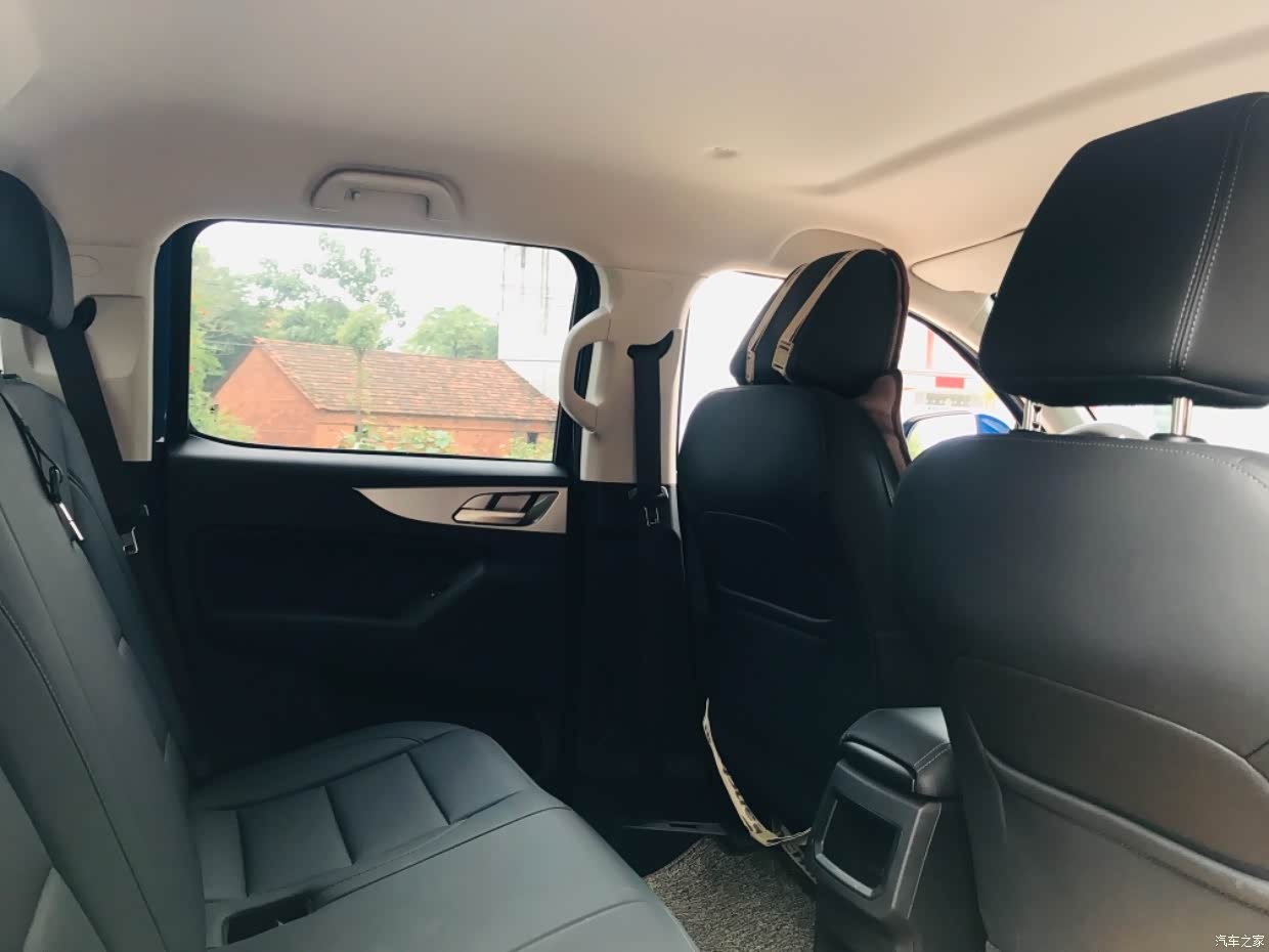 首先是室内空间,前排宽敞,我坐副驾驶,翘腿都不会影响,而且座椅很柔软,座椅放倒躺着都行。后排可以坐3个大人,而且腿部不会拥挤,特别的宽敞,门两边都有储物空间,放矿泉水的。但是对于我们做工程的来说,皮卡尺寸太大了,要是稍微小点就行了!