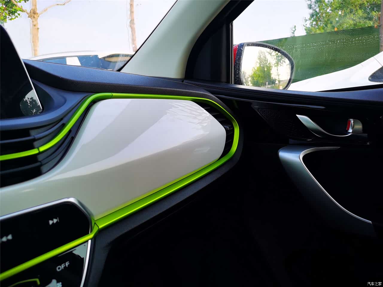 内饰的设计很新颖,一体式的大屏看着就很舒服,内饰的颜色配比也比较好,有荧光绿的点缀,看上去可以让人有一种眼前一亮的感觉,触摸式的按键手感也很不错,特别是挂档旋钮的位置设计的很有个性,摸上去也有一种很丝滑的感觉,除了新车异味比较严重以外,其余的我感觉都挺好,毕竟新车都是有味道的,这一点是可以理解的,经过这段时间的通风和放置活性炭,异味已经没有什么了。