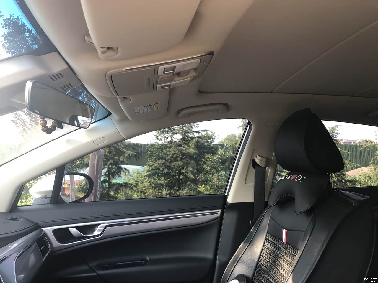 内饰的整体搭配布局让人很舒服的感觉,中控屏尺寸也很大,全景天窗和女友偎依在一起看星星,别有滋味,美