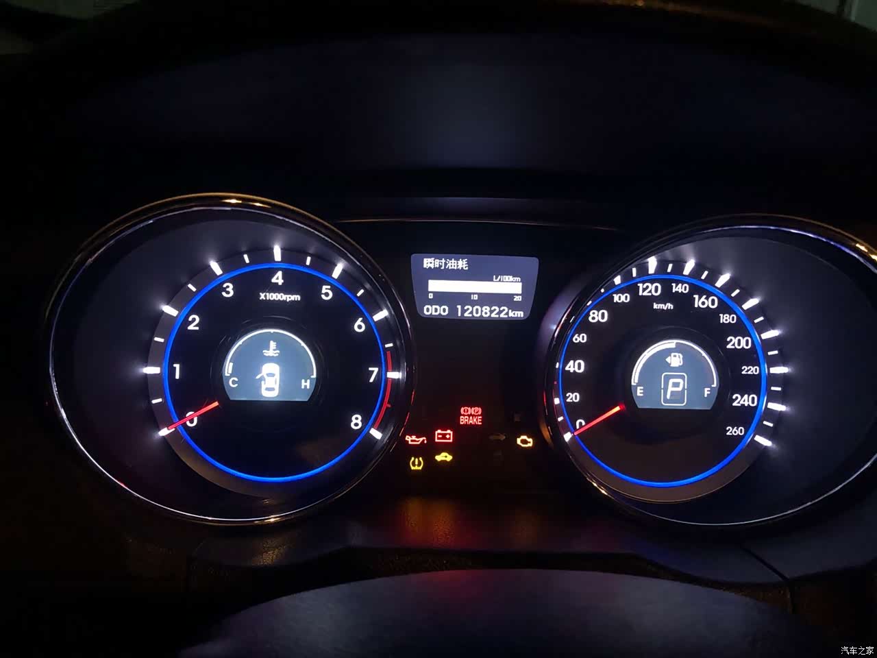 索纳塔8动感的仪表非常吸引人眼球 速度和转速的匹配使得驾驶员能可看到的范围内相当有质感 不错