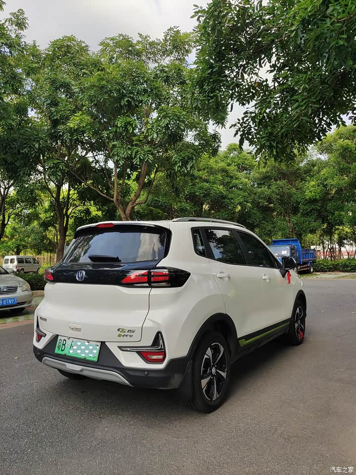前脸比较大气,侧边车窗线框还算比较美,侧边还有CS15 E-Pro的LOG标志。车尾整体还比较好看,特别是尾灯,给人的感觉尾灯跟玻璃的配色是一体的,比较漂亮、比较酷