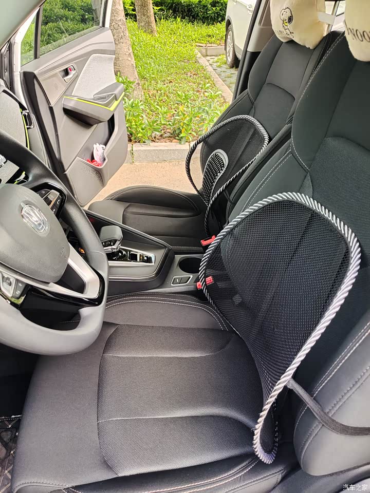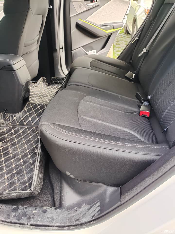 这辆车悬挂软硬程度合适,过减速带时感觉还是比较舒服的。前排座椅包裹性比较好,车子转弯时感觉倾斜度还不大,隔音效果还不错,后排腿部空间比较大。