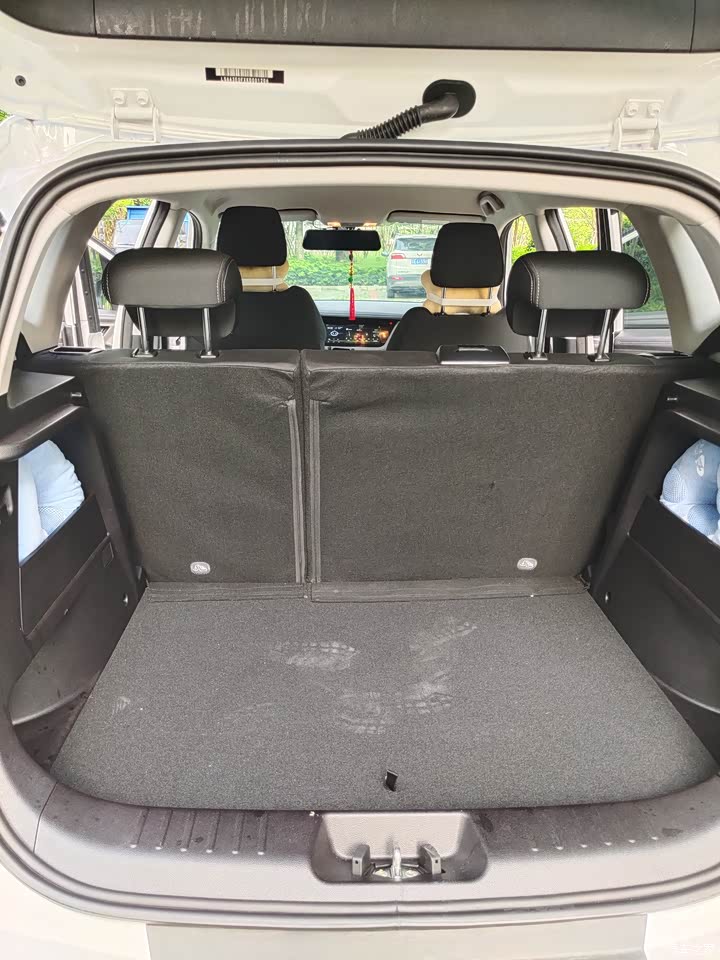 前排座椅包裹性比较好,车子转弯时感觉倾斜度还比较小,我的身高是1.68米,坐在前排头顶剩下一拳半的距离,坐在后排头顶也是差不多剩下一拳半的距离,腿部空间有两拳半距离。四个门都有储物空间,后尾箱能够轻松放3个标准大的行李箱,后尾箱两边各有一个储物格,可以放颈枕,方便后排自行取用。