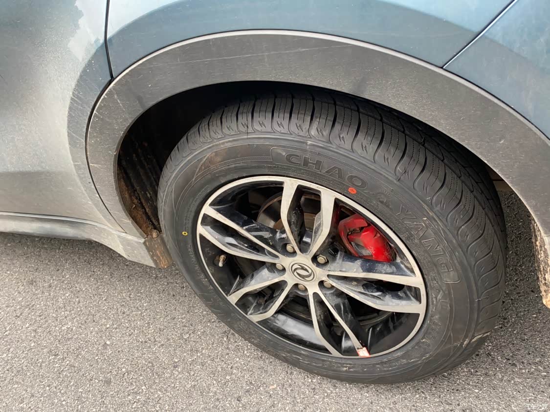 轮胎是朝阳的,配个红色卡钳,使车子看起来很具运动风格……