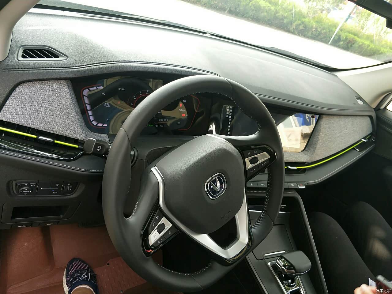 仪表盘的多功能显示是很棒的,很智能,中控的大屏然人看见就回心里美滋滋,还能只能语音对话,比如打开空调,对着讲话,语音控制一下就行了,不用再担心开着车的时候调空调很危险了,可以专心致志的开车了,这个设计真的是让人眼前一亮啊,这个价位的车居然还有如此高端的设计,一个字“棒”。估计好多高端的合资车还没做到如此的只能吧!整个的中控不是那种塑料的,而是一种灰色布的,不像是塑料看上去那么劣质,而看上去让人很舒服,很清新的感觉!空调出风口的下边是有一个和小台子似的那种设计,还是皮质的,这个设计虽然很小众,但是,我是很喜欢的,我就是那群小众群体中的一个,哈哈!在中控正对着的下方,设计师设计了一个专门放手机的地方,(我是这样认为的,这里是放手机的,不知道别的用户拿来干啥,哈哈)很方便的,合理的利用空间,插电的地方还是可以按下去的,设计感慢慢啊!座椅是那种布料的,虽然看上去不怎么高端,但是坐上去还是很舒服的。