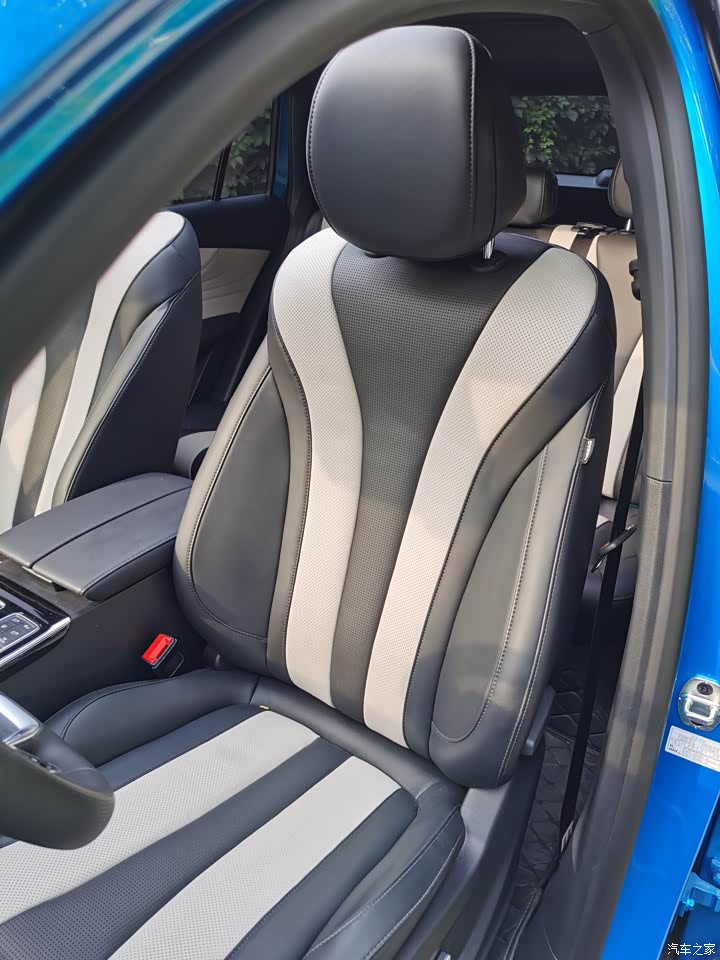 真皮座椅,包裹性不错。三档坐姿调节,适合长途旅行