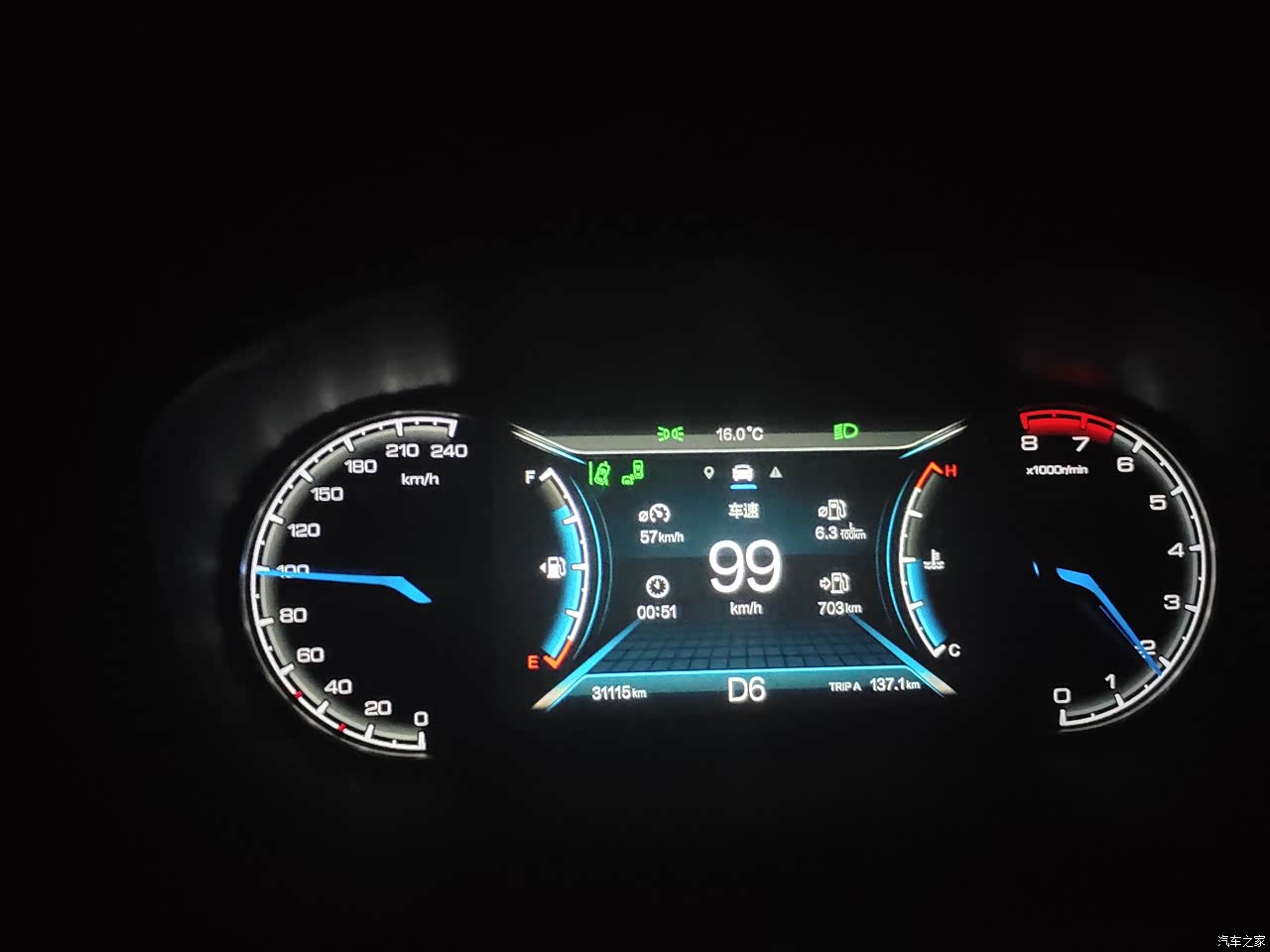 主驾座椅加热,真的很好……,特别是冬天,太舒服了。缺点就是附驾没有加热功能,强烈建议,把附加的座椅加热功能加上。车身整体调校偏硬朗,高速时侧倾不明显。皮质座椅略偏硬。主驾和副驾座椅电动调节,很方便。 高速风噪有些偏大,整体的NVH还有待提高。车内具有PM2.5空气过滤器,在外面已经爆表时,车间空气仍可保持绿色。第二排有独立的空调出风口和阅读灯,体现了贴心的设计。车载空调制冷很快,效果不错,对动力影响较小。