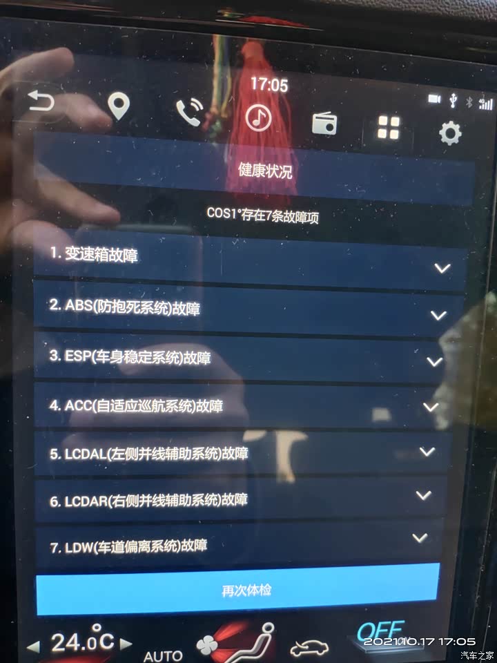 长安欧尚科赛故障在2020年12月-2021年2月,冬季温度低,期间总是报辅助刹车系统故障,天气特别冷的那几天。冷车打火后,报故障,电子手刹不释放。约原地热车40分钟后,故障全部消失,电子手刹自动释放。当右侧红色齿轮叹号灯亮时1,左侧ABS防抱死系统的灯也是亮的2,车速无显示,与车速相关的功能,如续航里程,单程小计的功能都无效3,电子手刹无效,锁上则不释放。4,四门不能自动落锁5,倒车雷达也报警,不能用。6,方向盘,无助力转向,很沉。7,辅助并线和车道偏离系统,也报故障。8,辅助刹车系统也报故障。9,停车后,锁车,后视镜不能自动收回。10.温度低于-10度,最近这两天早上电子手刹不释放,原地热车30分钟后,报警自动消除。11.按熄火键,无法灭车,需要长按,才能灭火。以上故障灯,亮起时,车辆可以开,在开的过程中,车辆行驶一段时间30分钟以上,可能会突然全部消除,恢复正常。故障灯也会突然亮起,一会又自动消失。这个故障在过了冬季,说明ACC的雷达水平度有问题,需要调整。目前什么也没动,气温升高后,再也没有出现过。4S店也查不出问题。看看2021年冬季会不会重现吧。不知各位车友是否有同样的问题 。