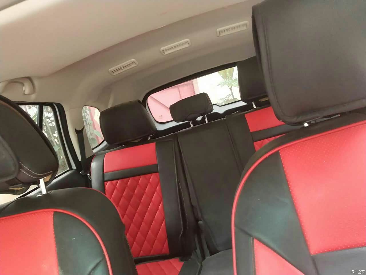 第二三排空间,座椅皮座套黑红色,以后的日子过得红红火火。