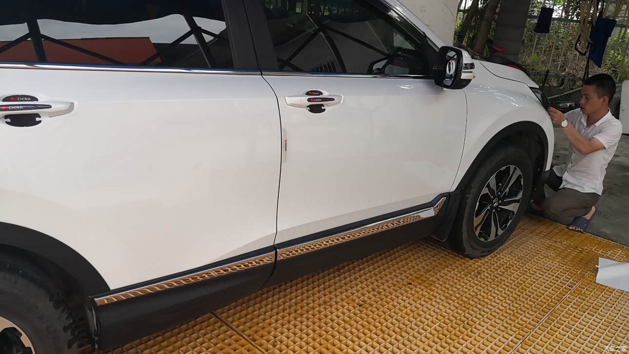 师傅在贴大灯黑膜,花了130加装的四门和雾灯亮条。封面是完成了的照片。