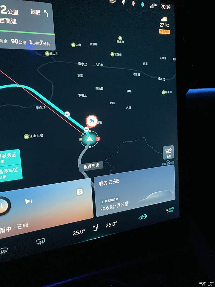 开了近2.5万公里,基本上对续航有所了解,在城里面百公里电耗大概在20上下,贵阳城区音乐、空调不断、比较暴力的驾驶,基本上上300km续航是完全没问题,高速上,120km的速度续航打5折,这个估计短时间没办法优化,毕竟车重在那摆着了,但以100-110的速度跑,上250km的续航完全没问题。