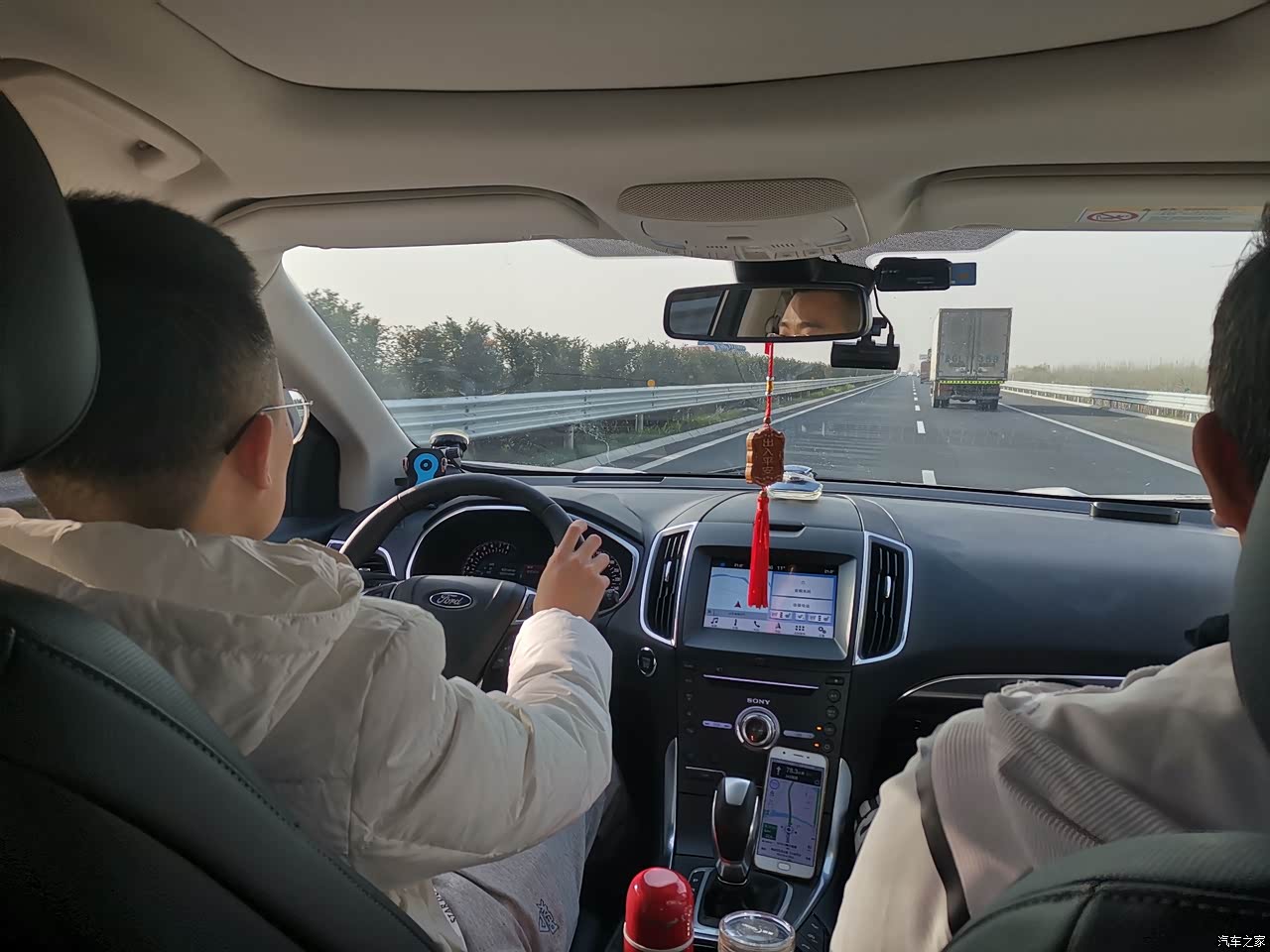 冬天长途车内照片,这是穿羽绒服的,车太大了。。。怕看不清周围路况,主驾驶座椅我调到了最高