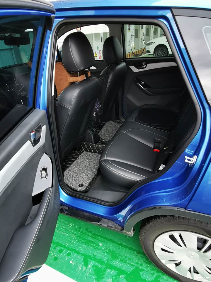 座椅选的皮的,方便清洁,后座偏直些,不能调节,坐久后腰略硬。前排很不错,可调节。