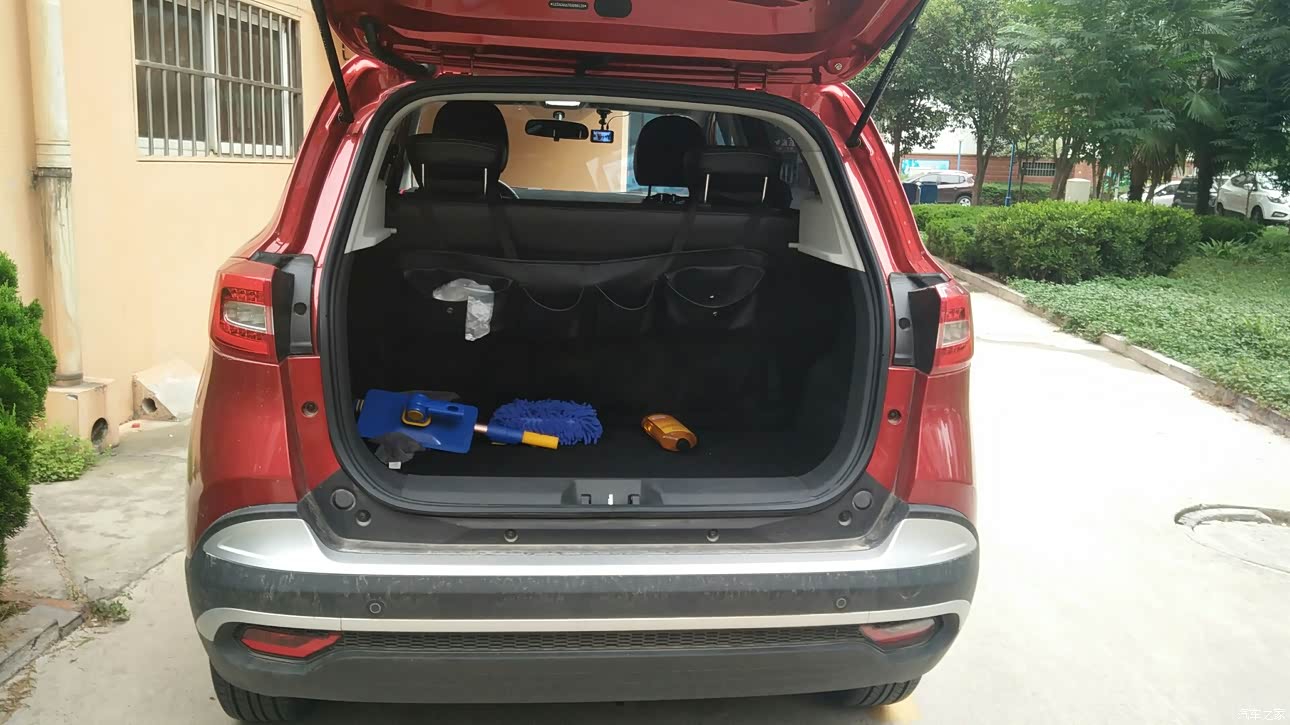 后备箱空间充足,可以放至少两个行李箱,门板储物格可以放水杯,前排中间还有个浅盒子
