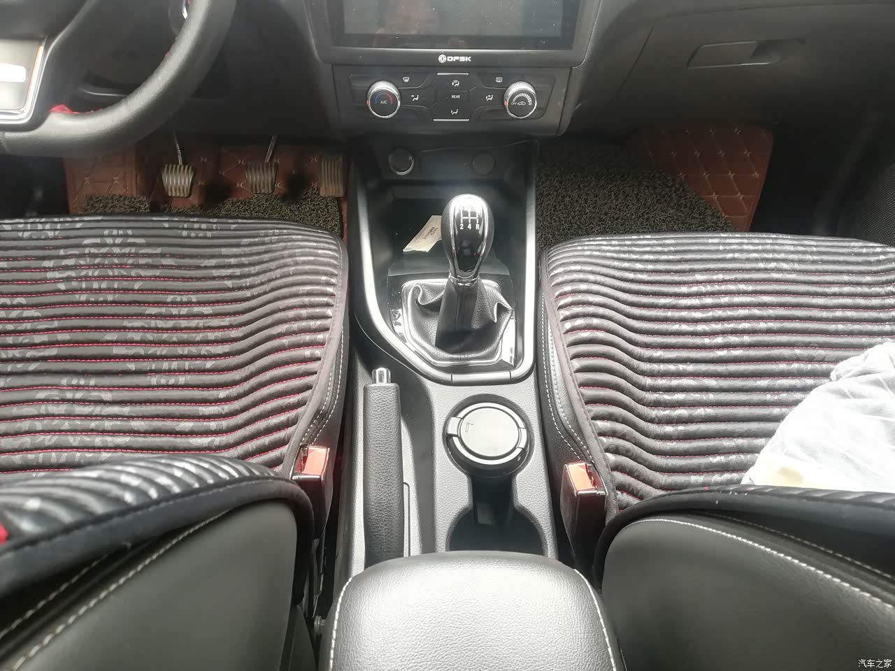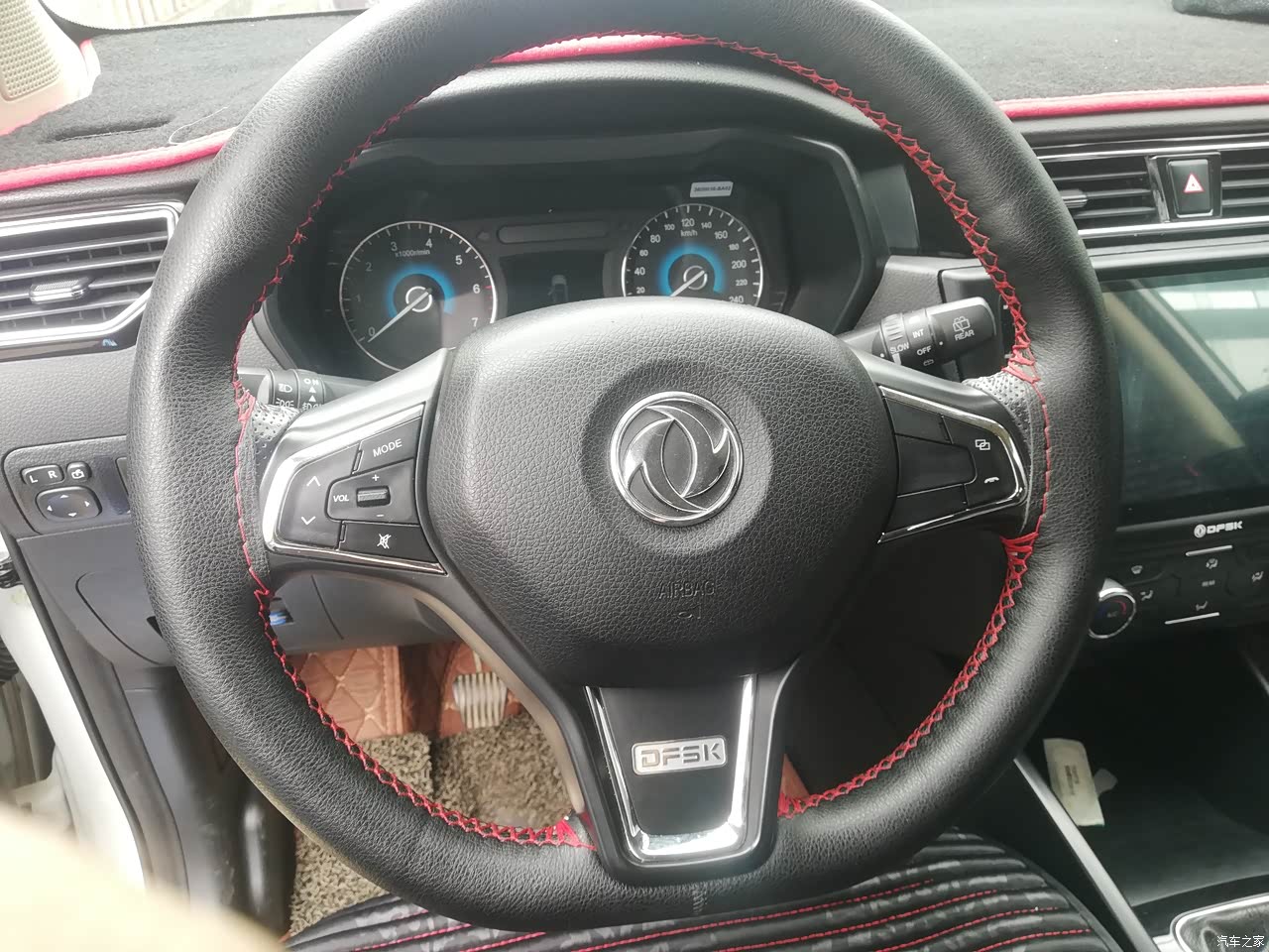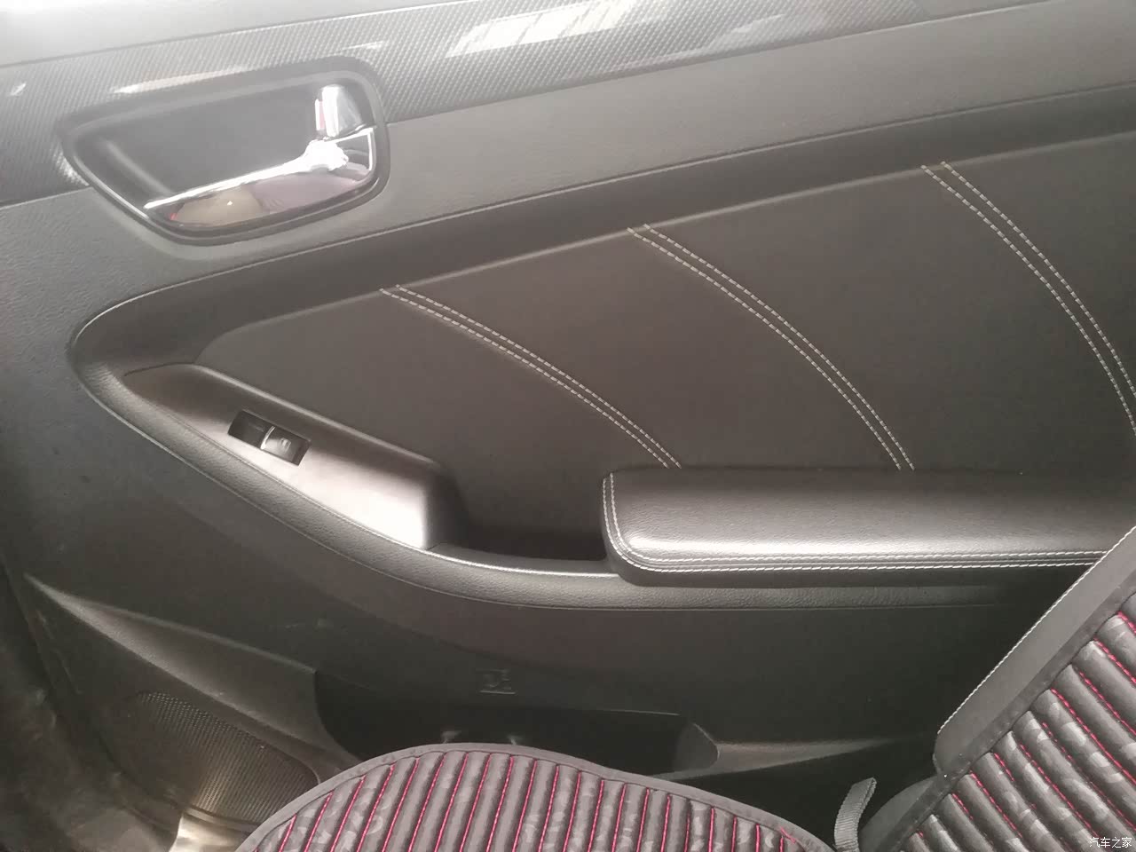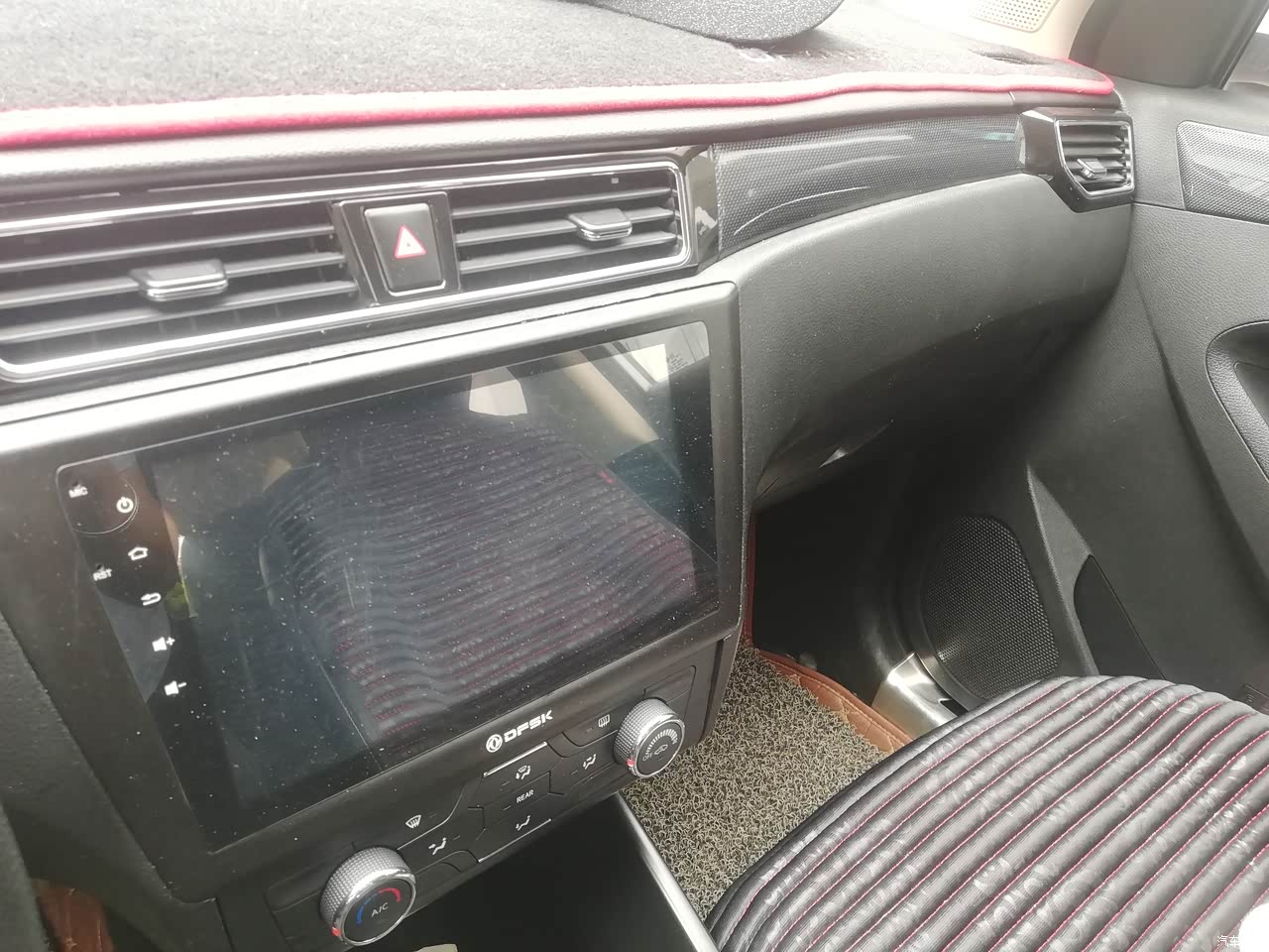 内饰是仿皮质,座椅也是皮质包裹的,看上去还是比较高级,在内饰用料方面还是比较舍得,软硬材质都有,车内也没有什么异味。中控台颜色搭配设计简单大方,出风口的面积也大。其他细节方面处理的很不错,整体搭配看上去还是很不错的,简单大气。就是显示屏有点不耐脏。