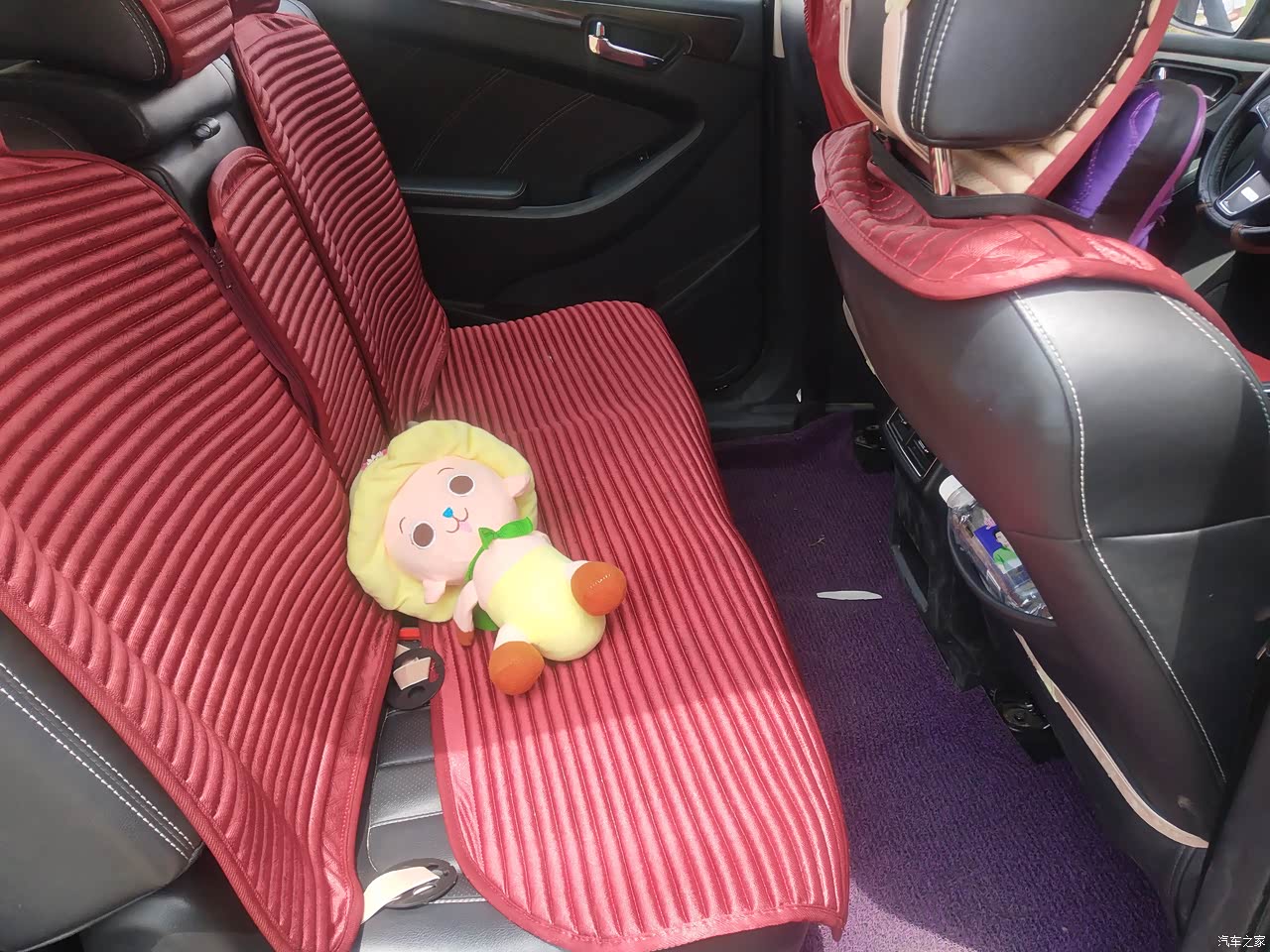 空间的话肯定是没有问题的,七座的车,不过平时我自己吧最后一排坐位都放倒了,因为平时最多也就拉个老婆孩子,后排座位放倒,后背箱的位置就特别宽敞,第二排座椅的话媳妇差不多一米七,做进去也特别宽敞,有些时侯回老家了,开我这个车就好了,拉的东西多,又是七座的