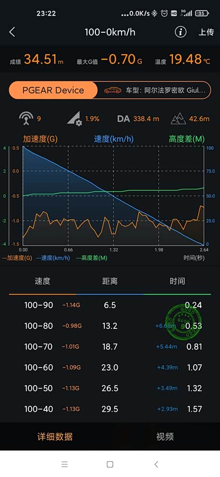 换了四条pss轮胎225 45 18 加速刹车成绩如下