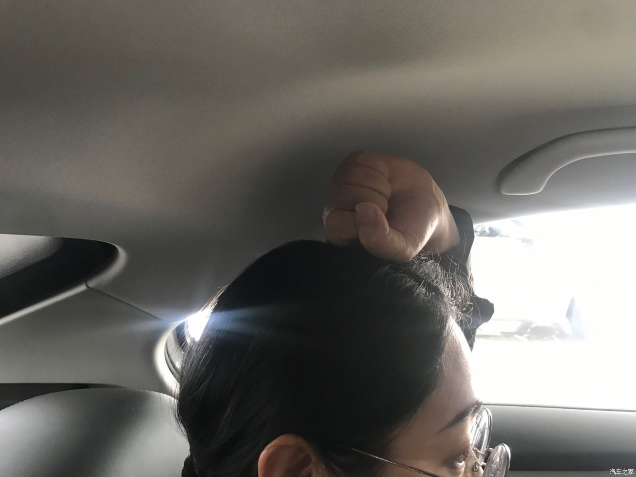 这是在后排,头顶和车顶的距离,将近两拳的距离。本人身高165cm.