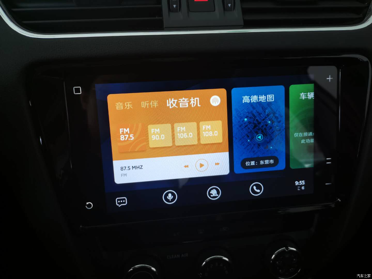 对称设计,多幅运动式方向盘,按钮很方便,豪华版搭配的是9寸全玻璃智能斑马导航,还带倒车影像,下面的空调还带空调过滤系统,能隔绝99.9%的雾霾。