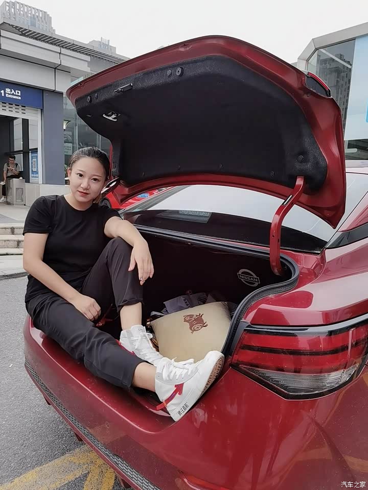 后备箱开口很大,女友坐进去毫无压力。取拿东西都很方便。