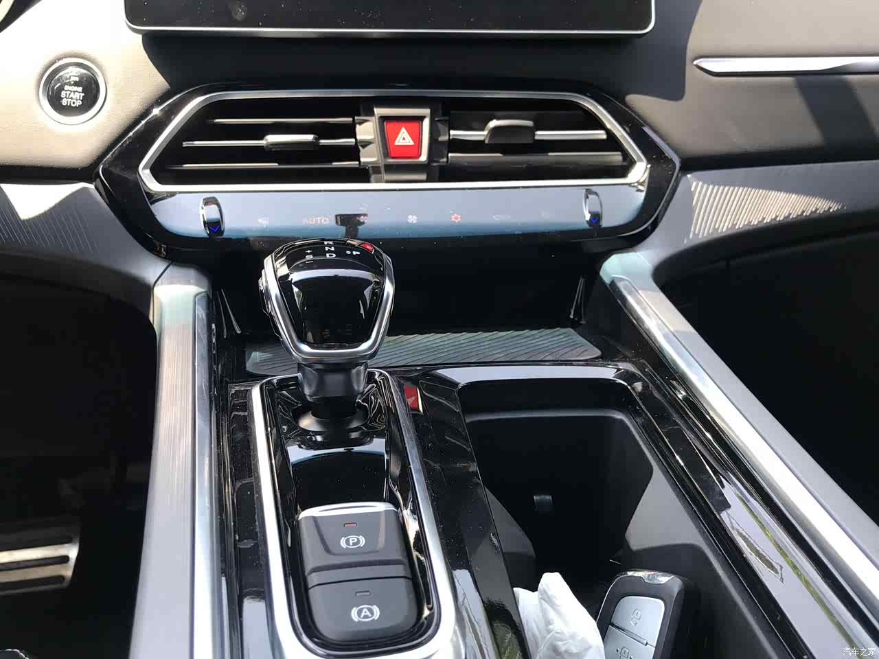 前面很多,后边也预留了,T型那个操控按键上水杯槽还做了隐身处理,台面上整洁干净。下面掏出的那个大洞很实在,大到水果拼盘,小到打火机烟盒都能放上,还不容易掉出来。今天送了8箱大货,后备箱一下没有装完,放倒后排才走成的,用起嘉悦X7我现在的得心应手了。