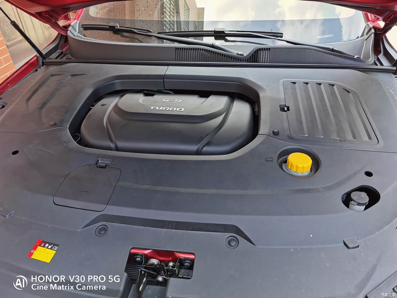 发动机舱全塑盖着,发动机顶盖有非常厚的隔音棉,发动机nvh值做得不错,驾驶室内基本上听不到发动机音