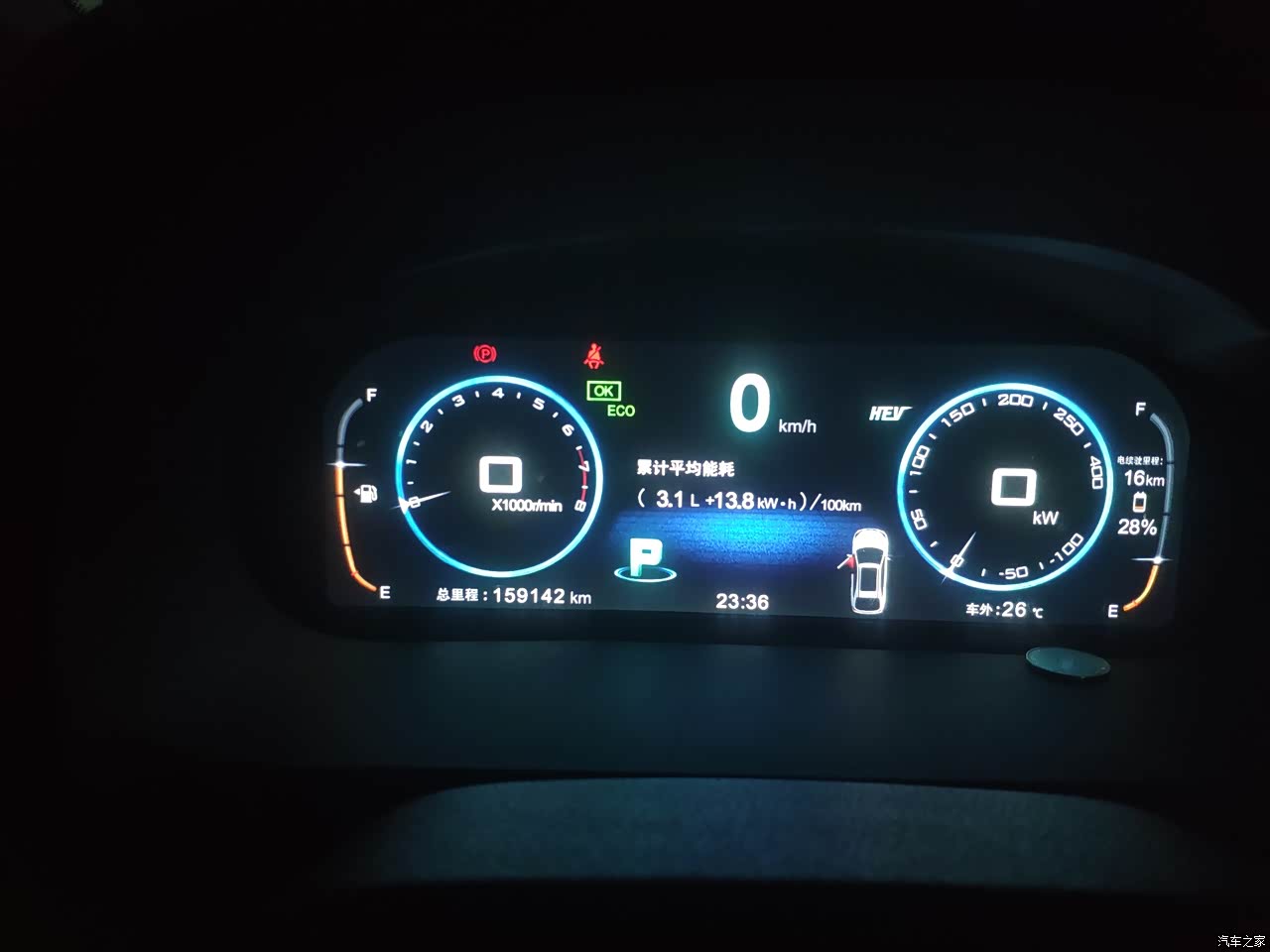 这是总里程159142km后的累计平均能耗:(油3.1L+电13.8kw•h)/100km。