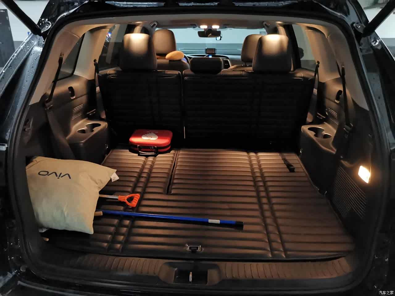 满意的地方很多,空间是最满意的,特别是第二排座椅同级别可以说很优秀的了 我基本是推到最后 大人轻松跷二郎腿,甚至可以做前去压腿,横向空间也很不错,做过一次三个平均180斤大胖子做后排很轻松惬意,就算满载第三排也是可以坐成年人没问题(大胖子除外) 年初坐过一次7个人,也是提车后迄今为止唯一一次满载,第二排往前移动到差一格到最前位置 这时二三排都有合适的腿部空间,跑了100 公里国道,全程欢声笑语,没有一人感到压抑,完美!还有这车乘坐挺安静的,舒适性很好,特别是高速100-120车内基本听不到外界声音,超过120了风噪和胎噪就慢慢的来了,当然国内最好不要超过120,还是要对自己和家人安全负责。还有外观,霸气威武,特别是侧面看 修长的身材 朴实无华的线条 一副任劳任怨的样子!