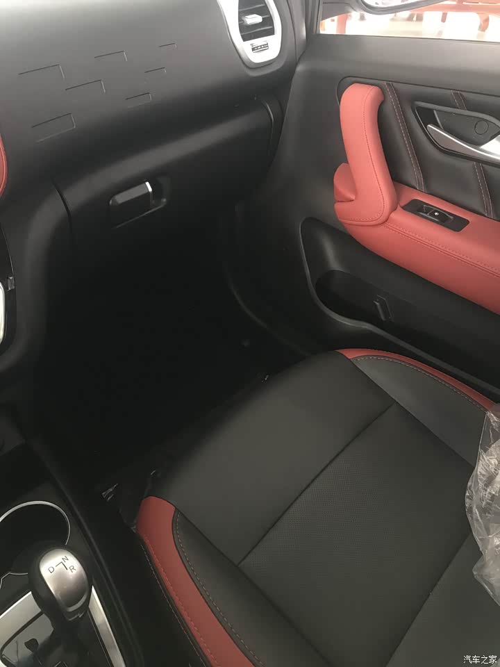 中控台软包包裹,更上档次,座椅是上等皮质,一点异味也没有,整个内饰都是红黑搭配的。还有两个气囊,方向盘也是皮质的,车门内里也是软件,很舒服,不用担心孩子碰到头碰到胳膊啥的。