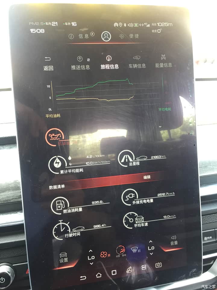 我都是混动模式下节能开的。40KM以下纯电来通过市区及拥堵路段。上到40时候我基本都是外环或是高速。上下班基本是10KM的市区15的外环。车辆不多的时候会开的快点但是都不是一脚地板油。整体下来4.1L的油耗 10kw的功耗个人还是比较满意的。