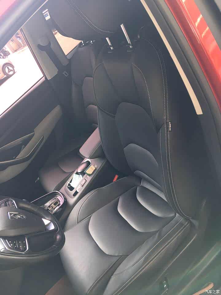 车里的座椅是黑色全皮质,包裹性很好,软硬合适,开车时对背部的支撑让人觉得很放松,和家里的沙发同样舒服,车内的隔音不错。