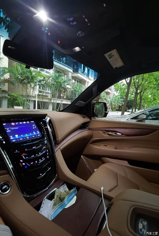 总体内饰还是可以的,美国车也就这样了。大部分还是皮革的。翻毛顶看着就舒服。就是天窗有点小😒车内的插座,usb接口也挺多的。