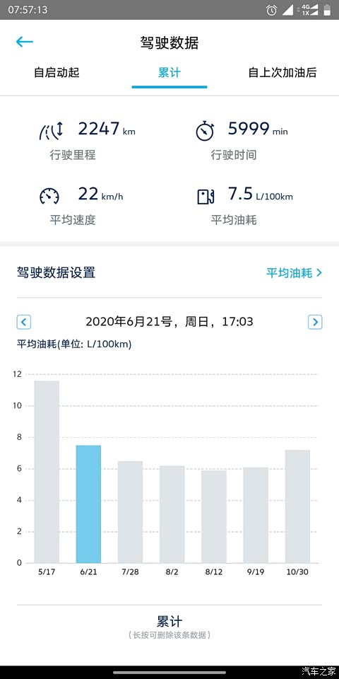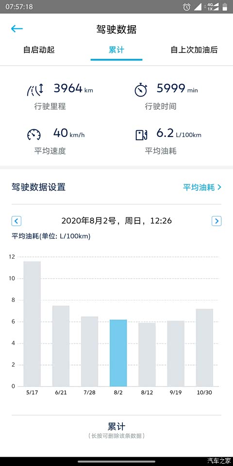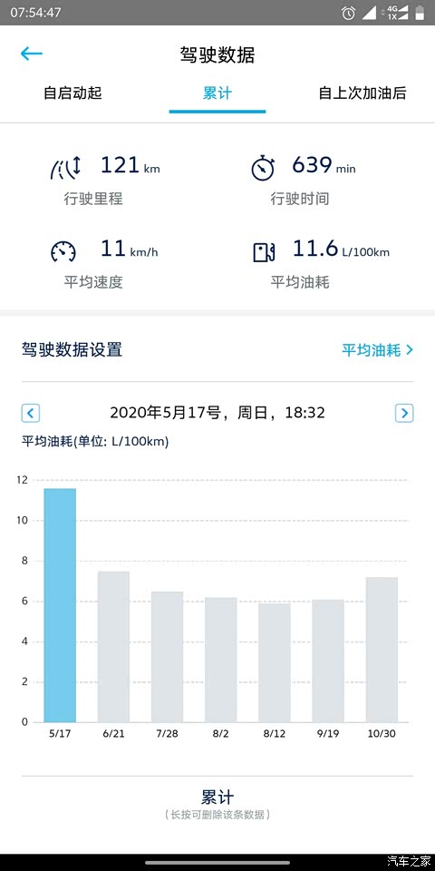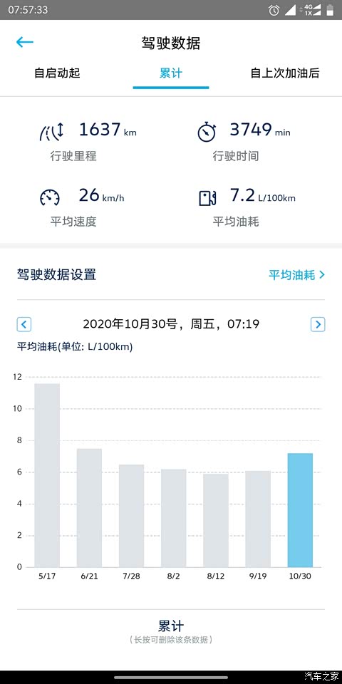 和之前发的差不多。我把app上累计油耗的数据也发一下。 每个阶段走的路况不一样,所以油耗也有出入,有拥堵市区,畅通市区,市区+环线,环线+绕城(绕城也堵,当然了,比环线和市区肯定好一些,这个路线基本就是我每天上班路线,油耗基本是6),整个10月因为个人私事基本都在市区开车,西安的修路,太可怕。