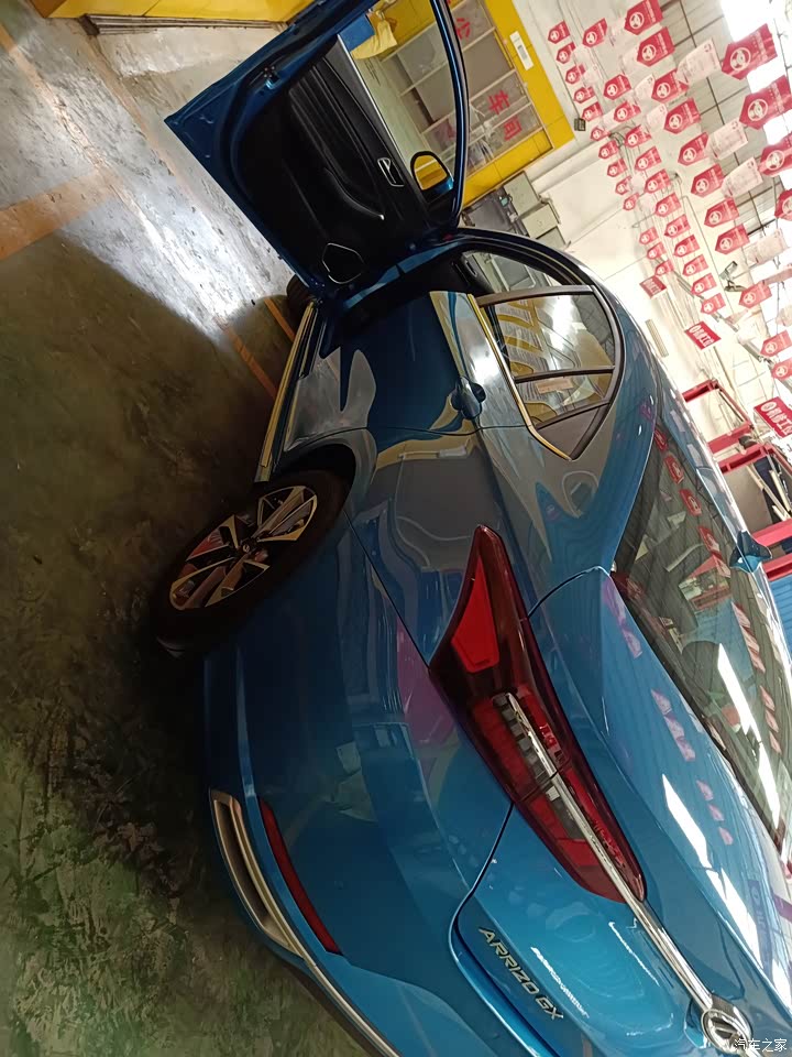 外观:外观很时尚,立体感也非常强,腰线的线条层次感非常的流畅,路上识别率的话应该是非常的高的,我选择的是星空蓝,非常的亮的一个颜色,在灯光的照射下,车身线条非常的立体,唯一不喜欢的就是车子的尾灯了,有点突兀,看着有点怪怪的