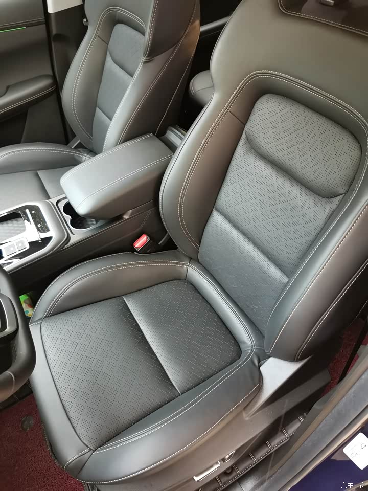 温度分区控制空调,无论前排后排,效果都是杠杠滴,就连后备箱里面都非常凉。皮质座椅包裹性非常好,软硬适中让我都舍不得加坐垫,怕破坏这种舒适的感觉。车内噪音控制也很不错,由于磨合期没过,时速最高只开到接近100,基本上只有轮胎的声音,也并不影响车内交流。唯一没有给5星的原因就是避震器硬,但是这一点大家都说SUV都这样的。
