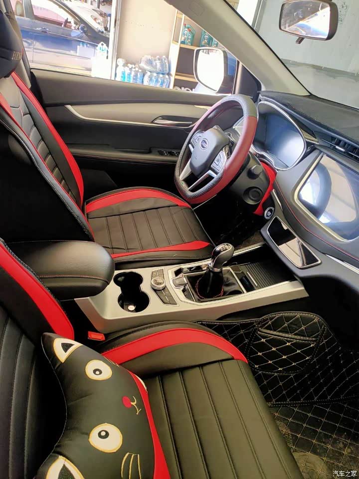 原车全黑的内饰很沉闷,所以自己装了座椅套和方向盘套,有点红色的点缀看起来还不错。