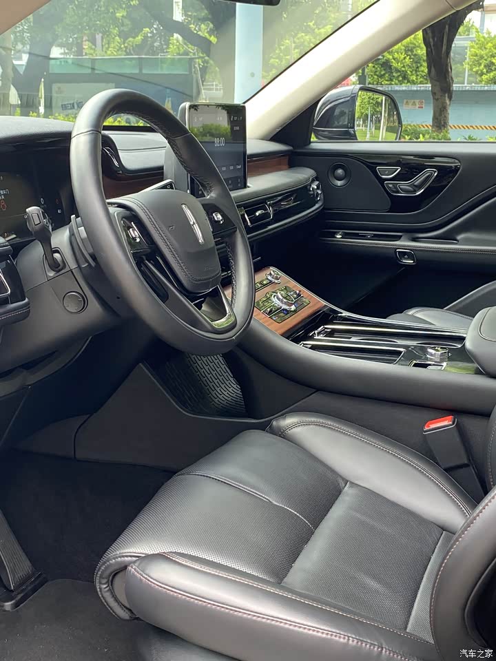 在内饰方面,林肯飞行家也是下足功夫了,尽显美式豪华。内饰采用金属,钢琴烤漆,真皮各种材质,做工和用料都很厚道。内饰配置也是智能高大上,高清度的中控触摸屏,功能强大,我特别喜欢它可以控制二排座椅加热通风,调节空调温度,还有显示空气质量之类这些功能,分辨率很高。内饰细节设计也很不错,提供了USB和Type-C充电口,乘坐后排的人可以使用。还有优质的音效提示音配置,立体环绕的音响系统。舒适柔软的真皮座椅配置,有按摩和座椅加热通风功能,又安全又舒适。
