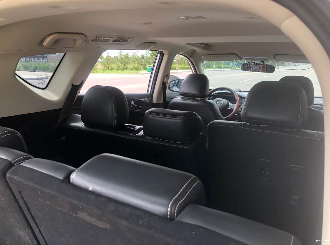 舒适性总体还算满意,第一排,第二排的座椅可以调节,座椅皮质包裹,软硬适中,开久了了也不会觉得累,空调非常好用,针对现在炎热的天气,有空调真是一件幸福的事,第三排座椅如果坐两个180身高的会有点拥挤感,这车悬挂有点偏硬,走隔离带时会有些不舒适!车速开起来后,会有胎噪和风噪,不过放上小音乐,这个也不是什么问题!!!